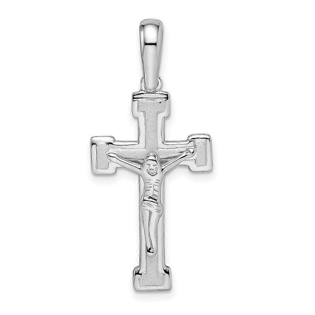 15.85mm 925 Sterling Silver Rhodium Plated Polished and Laser Crucifix Pendant Necklace-Pendant for Women