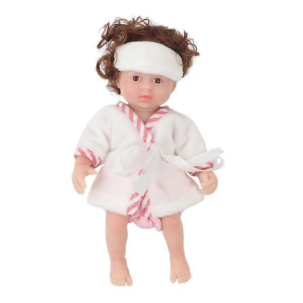15 cm Reborn Doll Mini Newborn Girl Doll Full Body Soft Silicone Lifelike Doll with Brown Hair Realistic Toy Doll