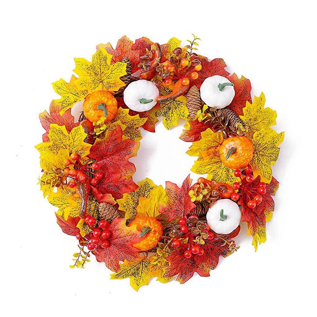 15in Autumn Wreath Fall Wreath Artificial Thanksgiving Garland with Maple Leaf Pumpkins Pinecones Berries Halloween Front Door Harvest Farmhouse