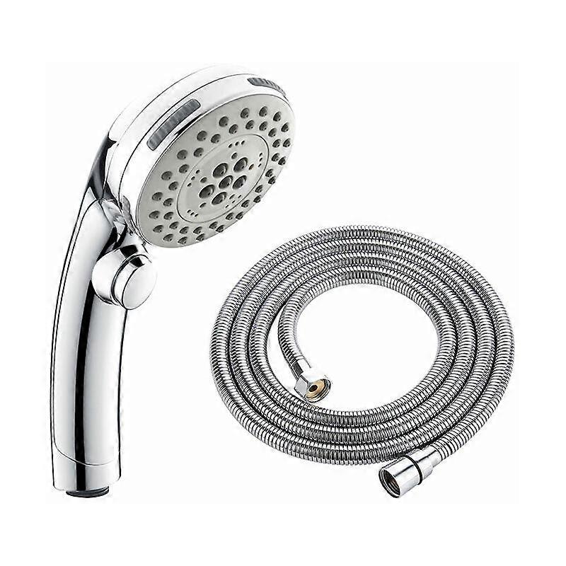 Chrome Shower Head with 1.5m Chrome Shower Hose 5 Jet Hand Shower with Universal Stop Button