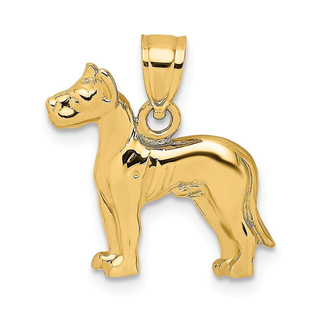 15mm 14k Gold Great Dane Animal Pet Dog 2 d Charm Pendant Necklace for Women