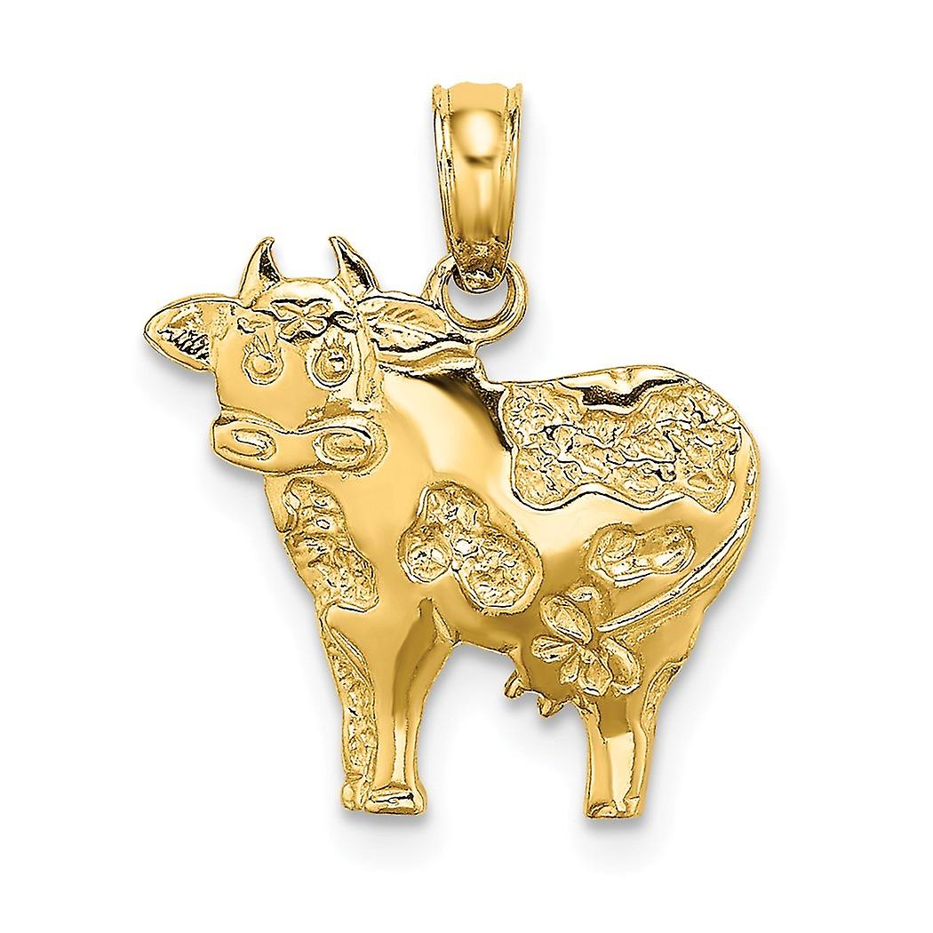 15mm 14k Gold Playful Cow High Polish / 2 d Charm Pendant Necklace for Women