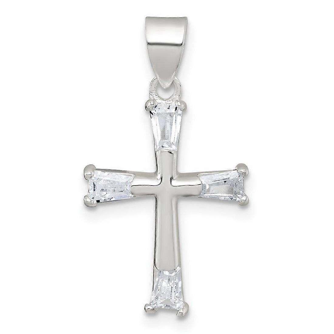 15mm 925 Sterling Silver Polished Tapered Baguette Cubic Zirconia Religious Faith Cross Pendant Necklace-Pendant for Wom