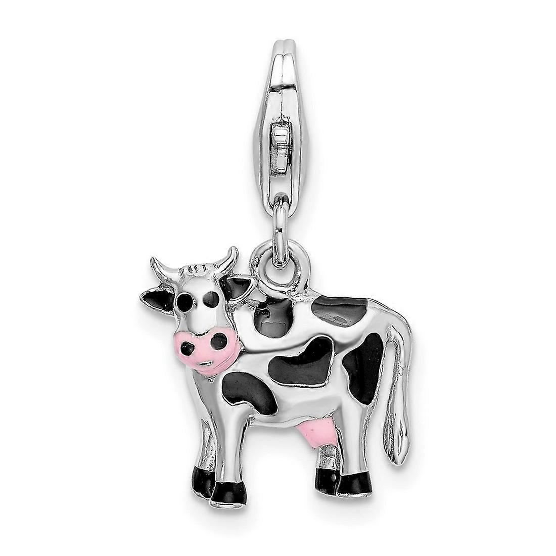 15mm 925 Sterling Silver Polished Fancy Lobster Closure Rhodium Plated Enameled 3d Cow Charm Pendant Necklace for Women