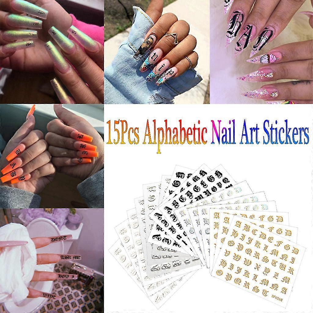 15pcs Nail Art Stickers Letter Reflections Tape Adhesive Foils Diy Decoration