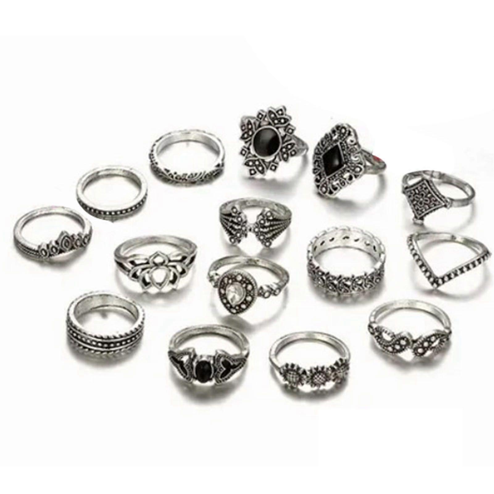 15PCS Vintage Metal Rings Finger Joint Rings Hollow Design Decorative Rings for Men and Women
