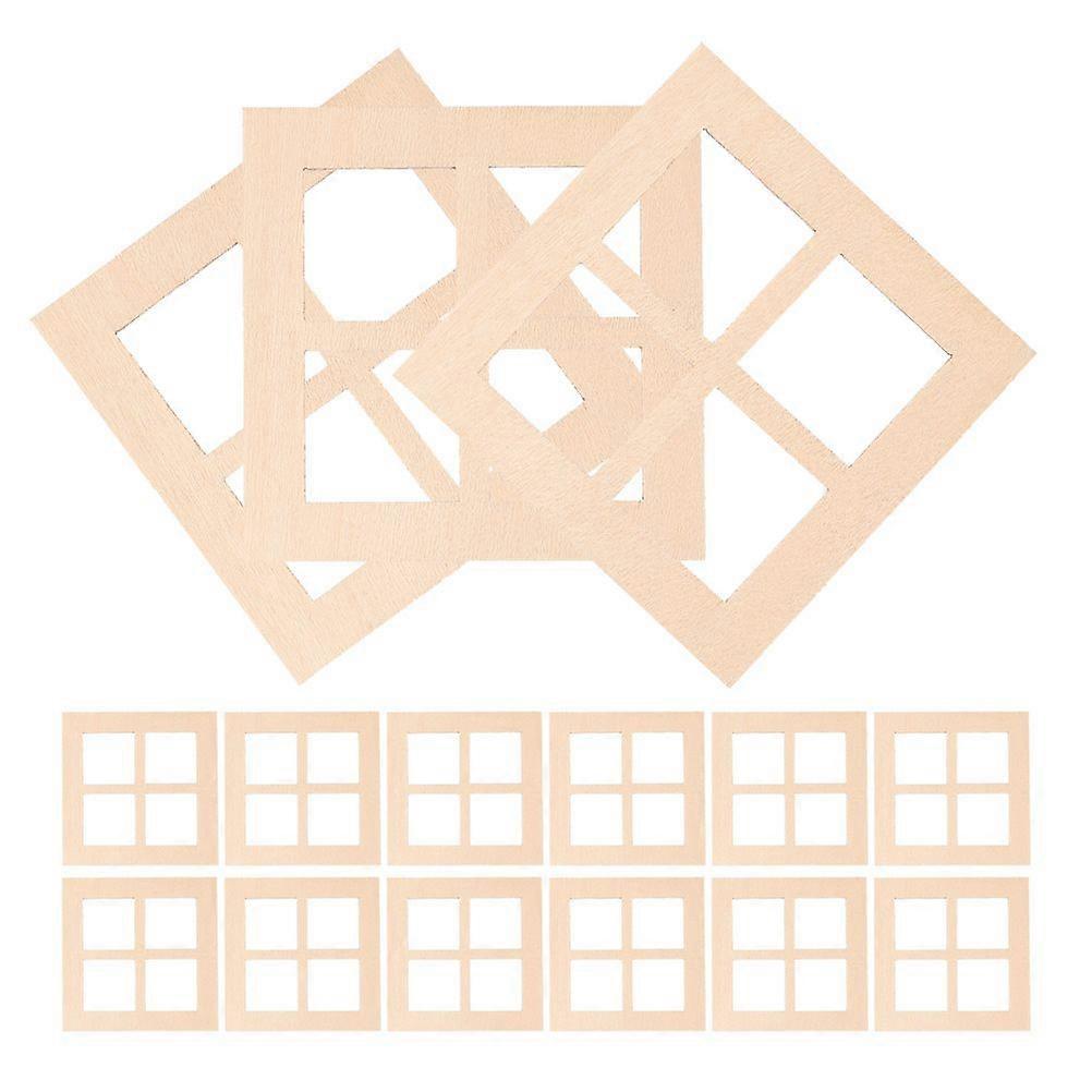 15pcs Miniature Wooden Window Frame Dollhouse Windows Mini Window Frame Model Doll House Furniture For Diy Crafting Supplies Kids Play Toy