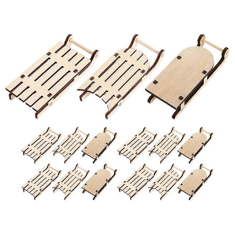 15pcs Mini Hanging Sleigh: Wood Sled Ornament Miniature Wooden Sleighs Model Tabletop Wood Ornament For Christmas Tree Dollhouse Hanging Decor 3 Style