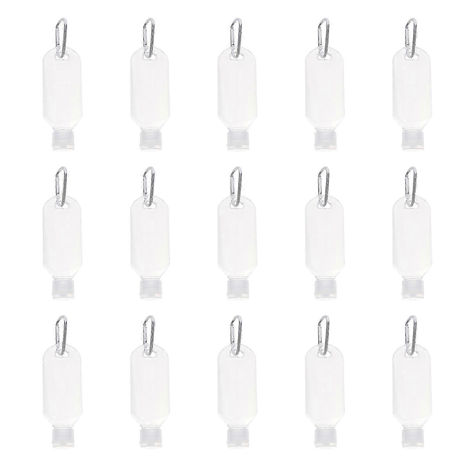 15pcs 50ml Refillable Bottles with Hook Hand Sanitizer Containers Travel Bottles Alcohol Containers (Transparent Bottles Random Pattern Hook)