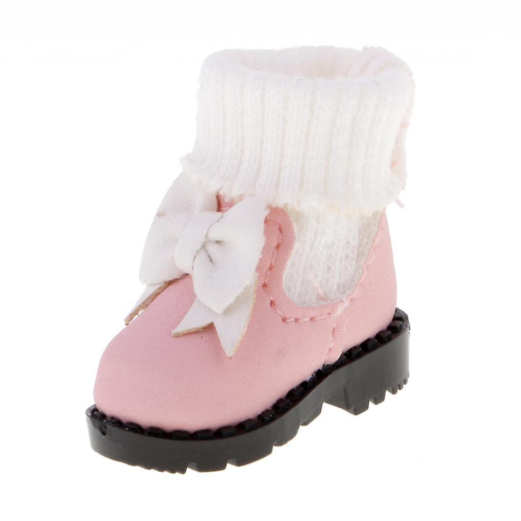 1/6 Scale High Top Boots PU Leather Shoes with Bowknot for Blythe Doll Pink