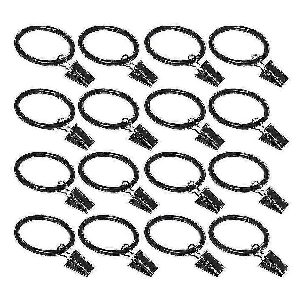 16 Pack Curtain Rings with Clips for Hanging Black Window Curtain Hooks Hangers and Clip Rings Set with 1.26 Inch Diameter Design