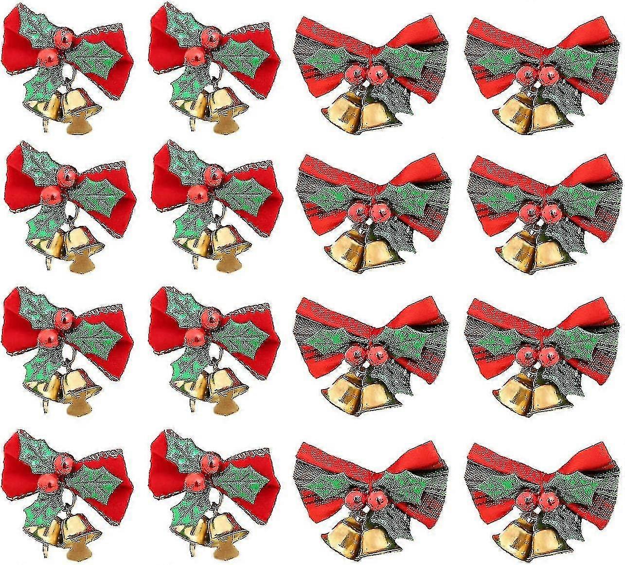 16 Pack Christmas Bow With Bells Xmas Mini Bowknot Craft Gift Ornament Christmas Tree Hanging Decor