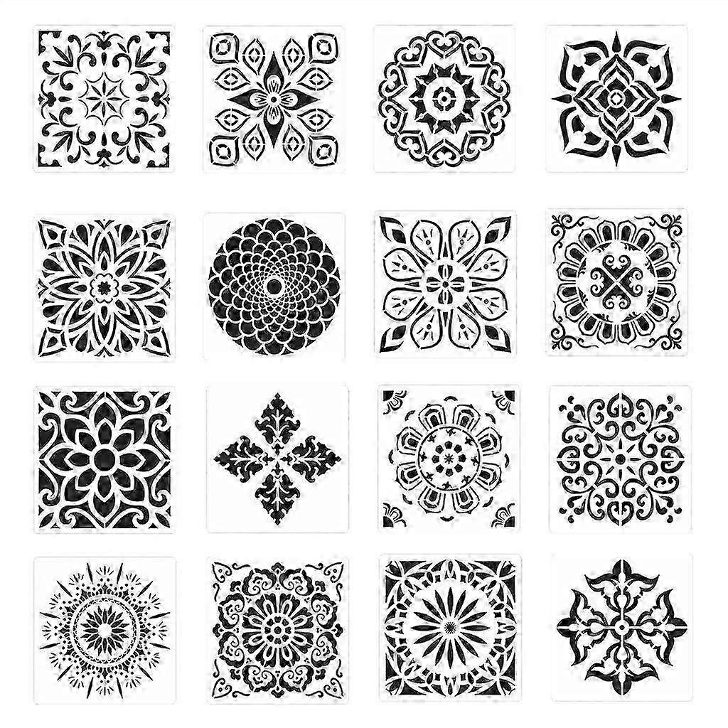 16 Pack Painting Template Reusable Mandala Templates Floor Wall Tile Paint