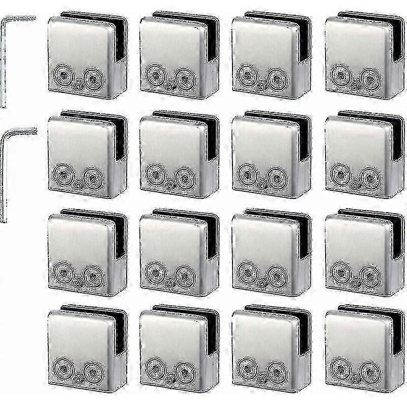 16 Pack 304 Stainless Steel Glass Clamps -Square Glass Clamp -Adjustable Flat Glass Clamp for Stair Balustrade -Polished Handrail - (8-10mm