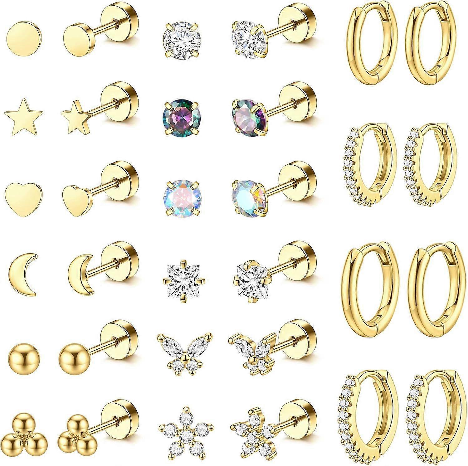 16 Pairs Surgical Steel Flat Back Earrings Gold Hoop Earrings Sets for Multiple