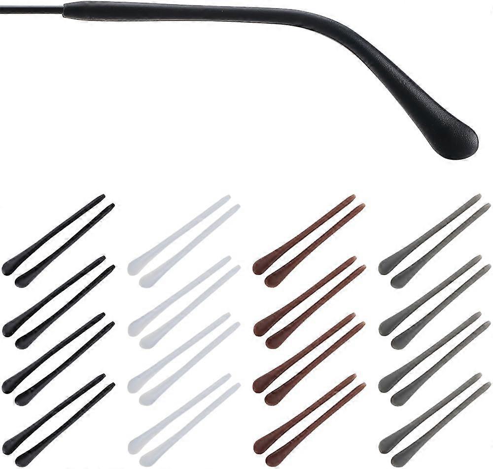 16 Pairs 4 Colors Glasses Temple End Tips Anti-Slip Eyeglass End Tips Silicone Ear Grip Sock Hook Pads Pieces Tube Sleeve Comfort Glasses Arm Replacem
