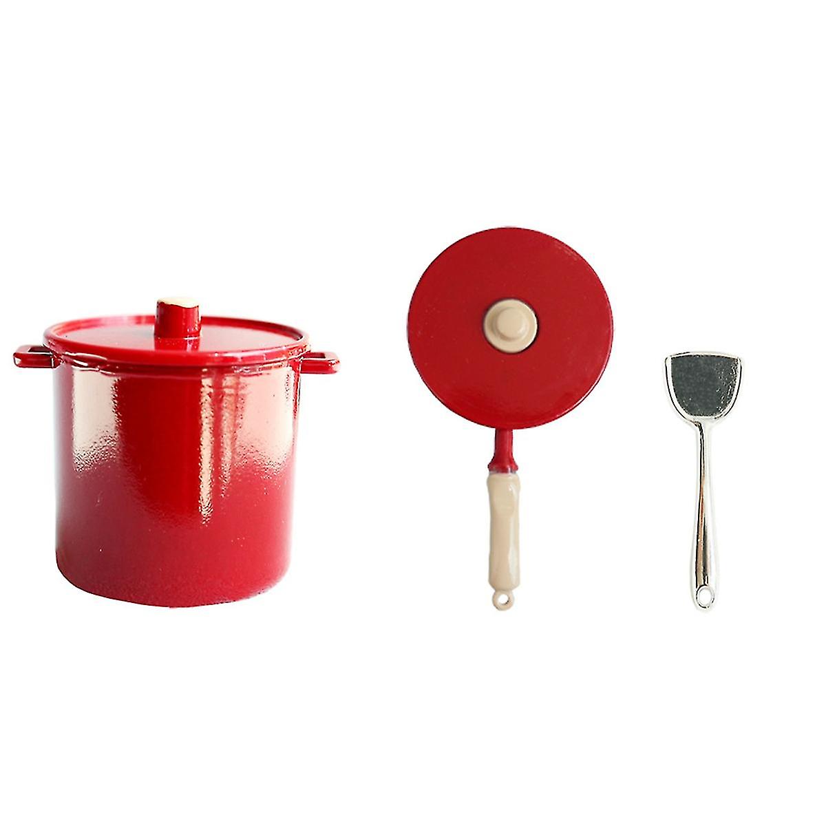 1:6 Miniature Kitchen Utensils Cooking Ware Mini Pot Boiler Pan Doll House Kitchen Accessories, Red