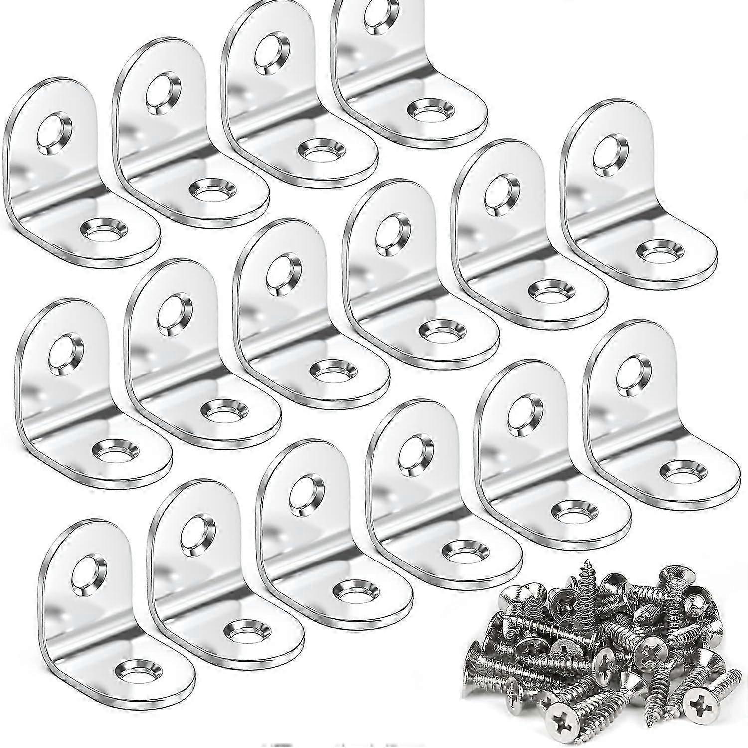 16 Pcs Corner Braces - 20x20mm 90 Degree Right Angle Brackets Fastener Stainless Steel L Shaped Corner Bracket with 32 Pcs Screws Brace Corner Steel J