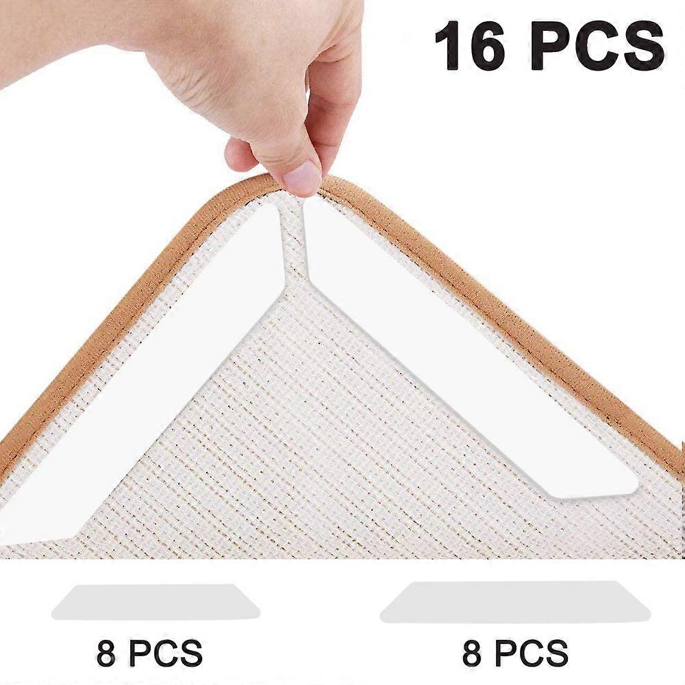 16 pcs Double Sided Washable Removable Anti Curling Corner Carpet Gripper, Non Slip Renewable Adhesive Rug Tape for Hardwood Floors and Tile