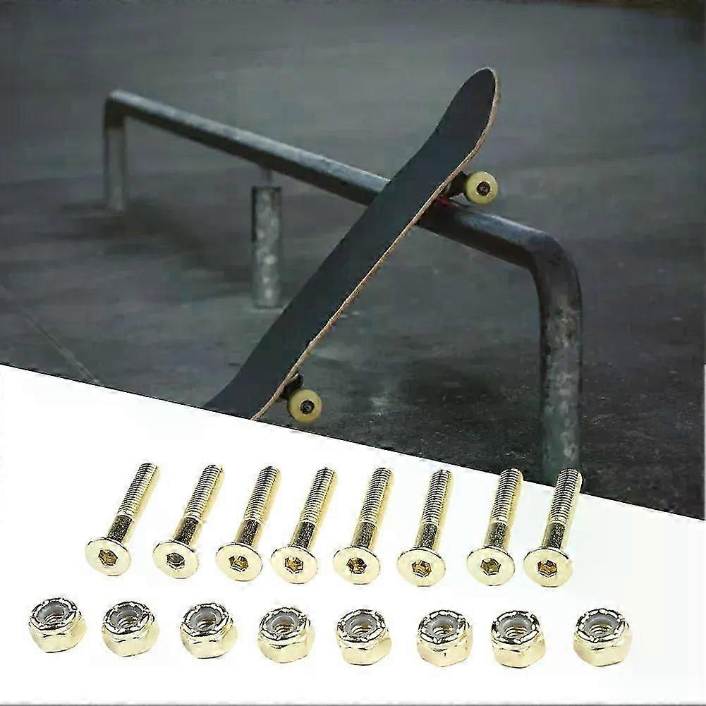 16 Pcs Replacement Screws+Nuts 25-30MM Medium Carbon Steel Black/Gold Screws Bolts Four-Wheeled Skateboard Longboard Accessories