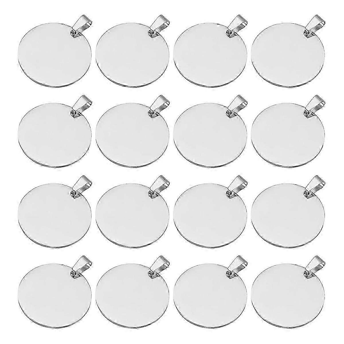 16Pcs Metal Stamping Blanks, 30mm Round Stamping Name Tags Blanks Metal Plate with Hole, Dog Tags Silver