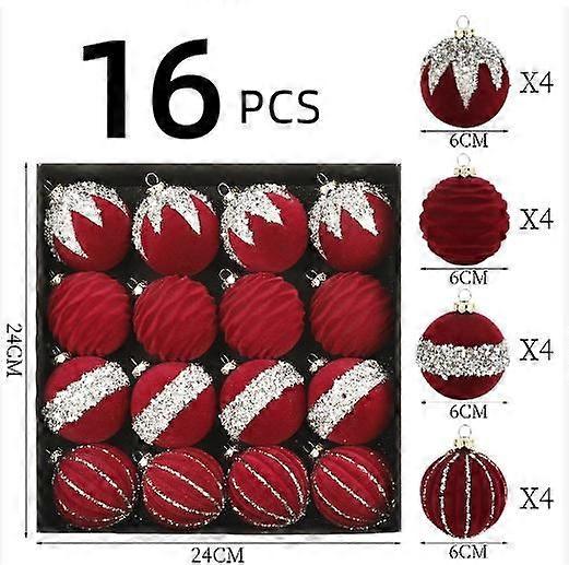 16Pcs Christmas Tree Ornaments Balls Red Flocked Tree Ball Shatterproof Xmas Ornaments for Christmas Holiday Home Decoration