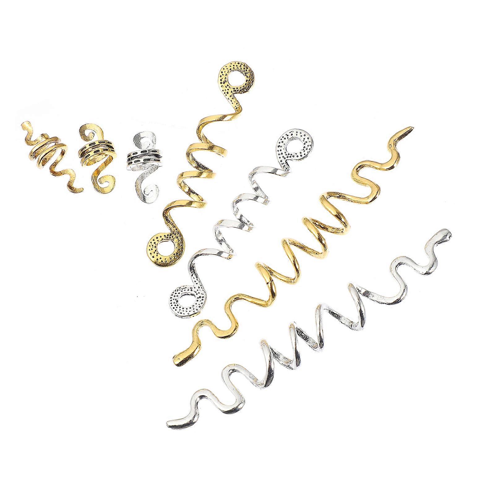 Made of durable zinc alloy material, this hair spirals will be suitable for all kinds of hairstyle, includes dreadlocks, long hair, straight hair, curly hair, ponytail, braiding or other hairstyles, perfect to give you a comfortable using experience. Features -Color: Silver, golden -Material: Zinc alloy -Size S: 2.40X0.90X0.90cm/0.94X0.35X0.35 in. -Size : 5.70X1.00X1.00cm/2.24X0.39X0.39 in. -Size L: 9.00X1.00X1.00cm/3.54X0.39X0.39 in. -Snake Shape Size: 2.50X0.90cm/0.98X0.35 in. - These hair spiral beads could match with your hair beautifully, as good tools for braiding dreadlocks. - Easy to put on and remove, help you create fashionable hairstyles, as great accessories for hair decoration. - The hair spiral beads are easy to operate, and will not hurt your hair, light in weight. - Can hold hair very tightly after pinched and will not easily get slide when wearing. - Made of zinc alloy material, they are safe to put on your hair and without damage to your hair. Package list: 2 x Small Hair Spiral Beads 2 x Medium Hair Spiral Beads 2 x Large Hair Spiral Beads 10 x Snake Shape Hair Spiral Beads