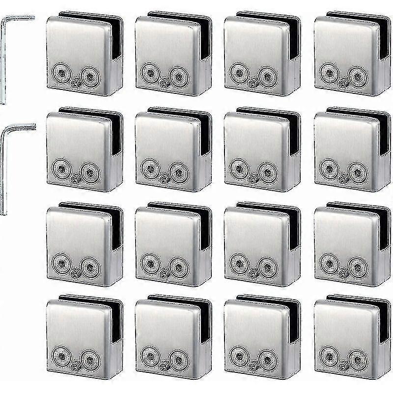 16 Pack 304 Stainless Steel Glass Clamps -square Glass Clamp -adjustable Flat Glass Clamp For Stair Balustrade -polished Handrail - (8-10mm Square)