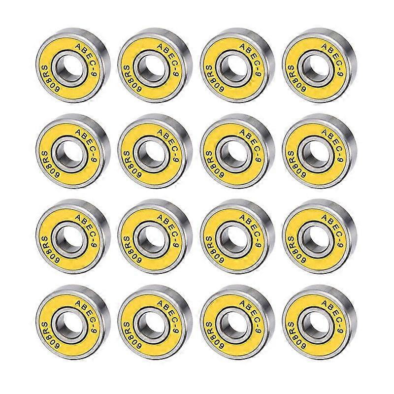 16Pcs 608RS ABEC9 Skateboard Bearings for Ongboards 8X22X7mm Yellow