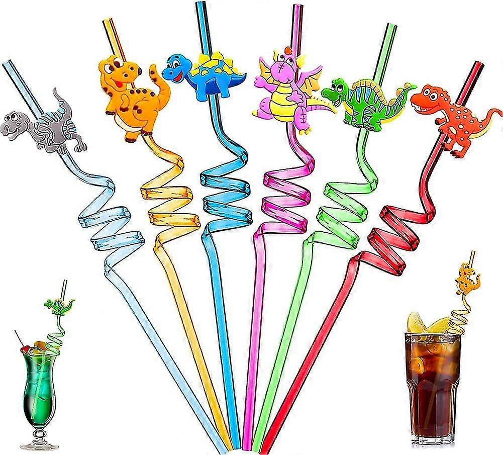 16 Pcs Acsergery Gift Novelty Dinosaur Drinking Straws, Reusable Plastic Novelty