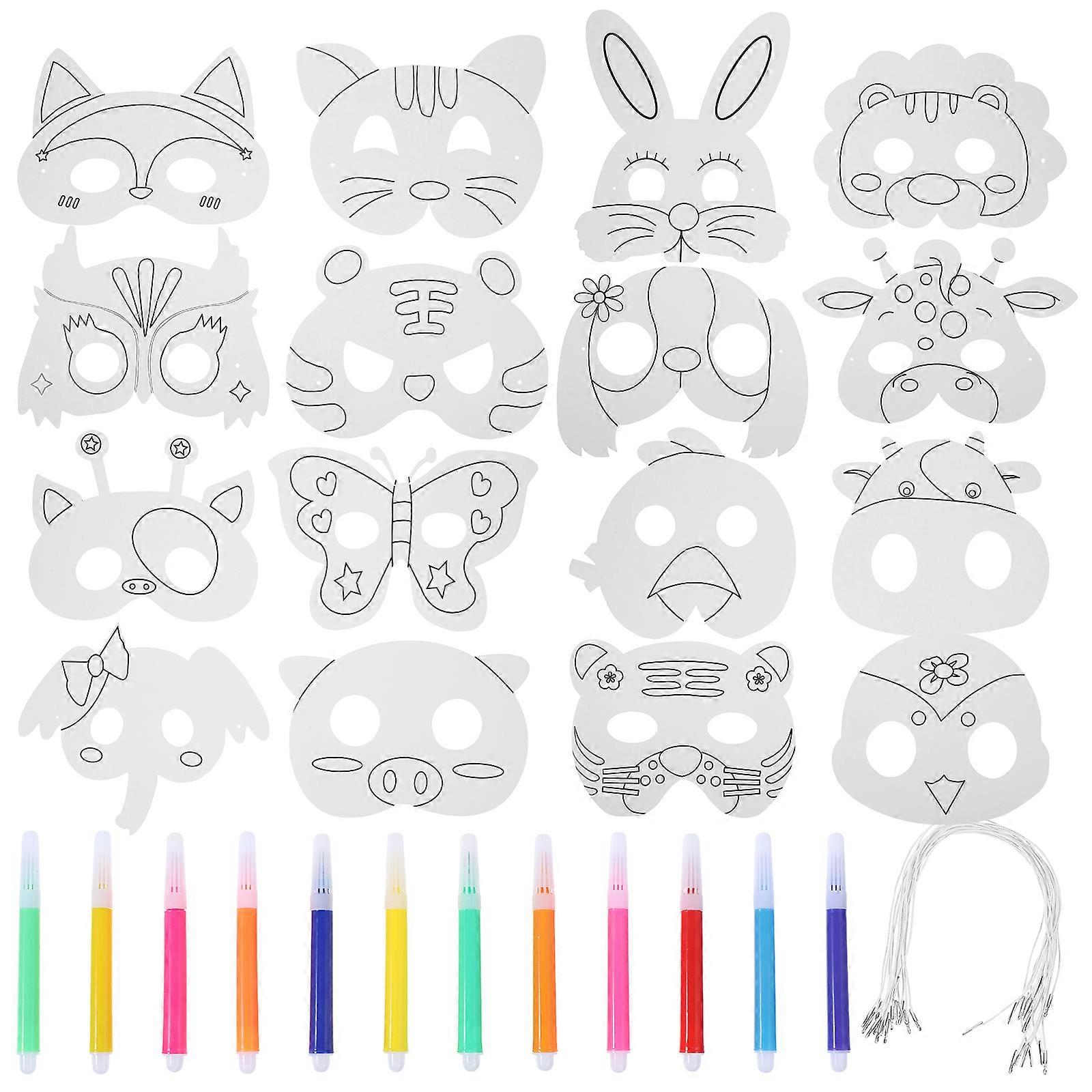 16Pcs DIY Animal Masks Party Paper Masks Animal Painting Blank Masks Cute Animal Mask