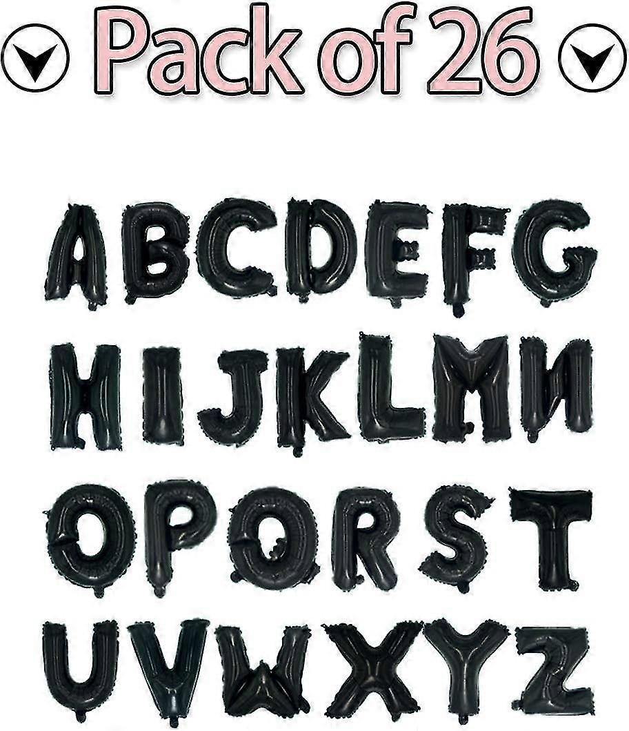 Pack age IncludedPack age Included A-Z 26 Letters foil balloons in Black, included a Straw . Size Material16 inch before blown up. Material is made of good quality aluminum foil film which can be used repeatedly. (Not support Helium) . . Party DecorationShiny, Elegant Decorations create a brilliant atmosphere for your party or celebration . Easy To UseEasy to inflate using the a straw or an air handheld pump ,insert the straw into the inflation tube carefully, Press the self -sealing tail after finishing blowing up , If air leak occurs while inflating, please press the inflatable hole or use tape to assist the automatic sealing of the balloon.