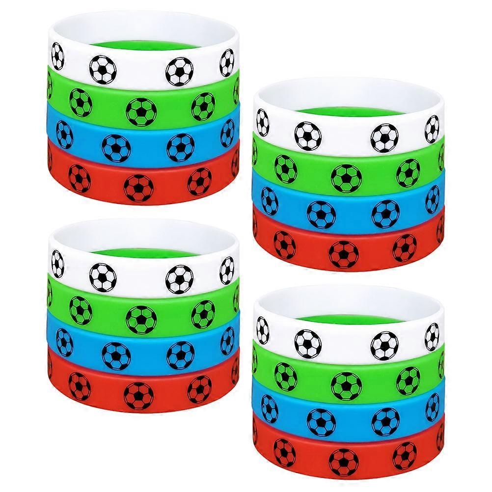 16 Pack Football Themed Silicone Wristbands – Stretchable Sports Bracelets for Men, Women, Boys – (Red, White, Blue, Green)