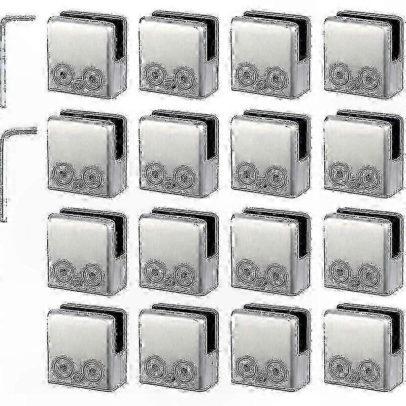 16-Pack 304 Stainless Steel Square Glass Clamps for 8-10mm Flat Glass Handrail Systems Polished Finish Balustrade Mounting Solution