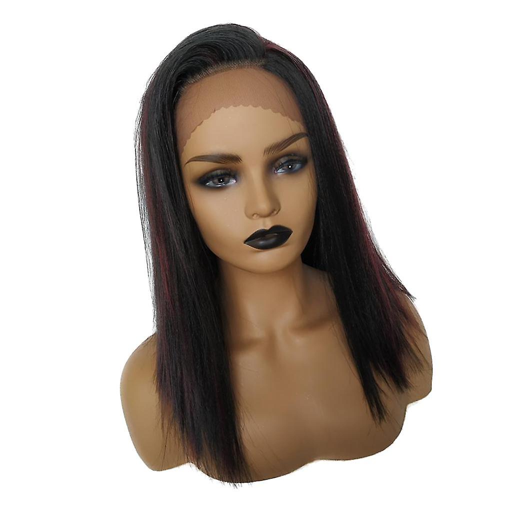 16'' Lace Front Long Straight Wigs Natural Looking Synthetic Side Part Wig