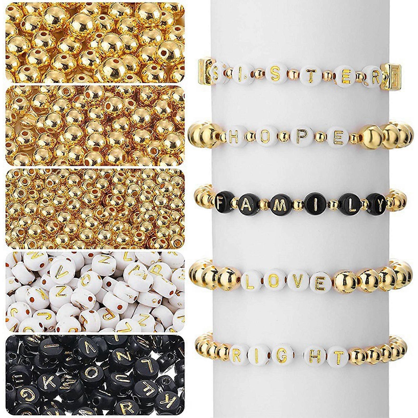 1600 Pcs Gold Black White Beads Glossy Smooth Surface DIY Beads for DIY Earring Necklace Bracelet