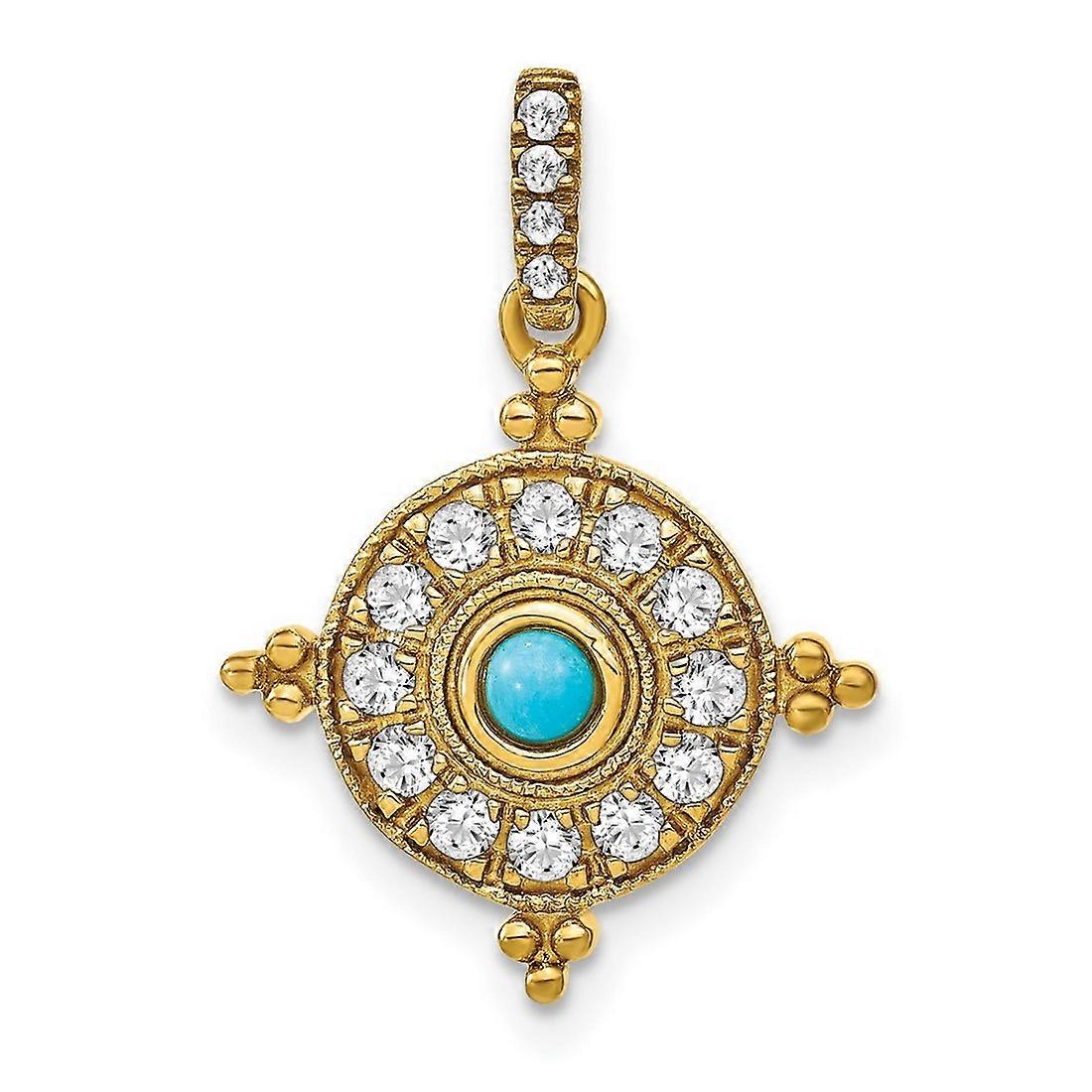 16.3mm 14k Solid Gold Simulated Turquoise and White Topaz Pendant Necklace-Pendant for Women