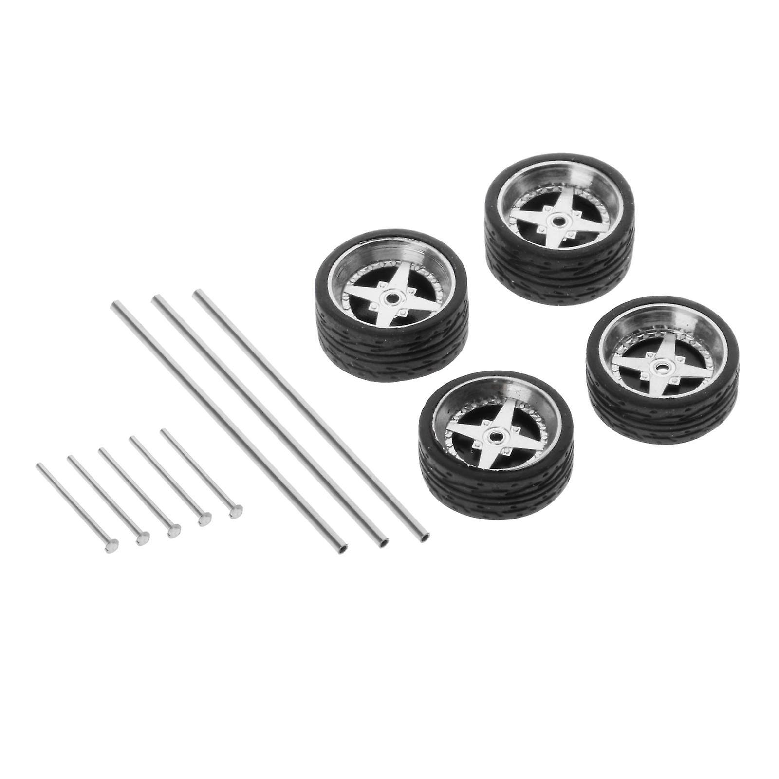 Description: 4pcs Alloy rubber wheel & tyres set for 1:64 model car. CNC alloy and rubber made, higher precision and accuracy. Easy to install and suit for car models car accessories adult toys collection. Strong grip power rubber tyre is for high performace on-road drift. Good replacement parts for diy 1:64 model car upgrade version. Specification: Material: Alloy and Rubber Size Chart: Front Wheel Hub: 4.2mm/0.17inch Rear Wheel Hub:5.2mm/0.20inch Diameter:11mm/0.43inch Package Includes: 4 Pieces Wheels 3 Pieces 25mm Shaft 5 Pieces Nail Note: Please allow slight dimension difference due to different manual measurement.