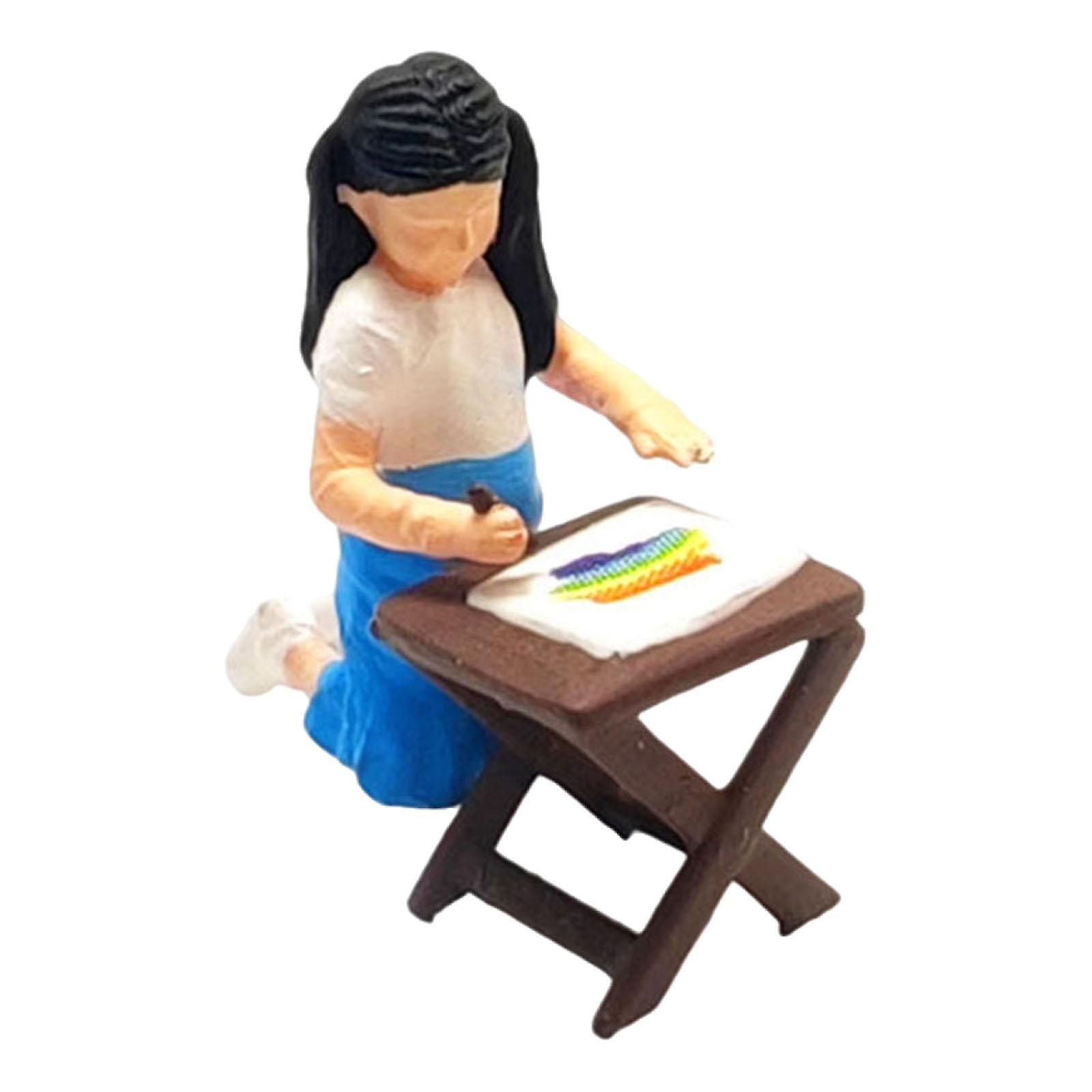 1/64 People Figures Drawing Girl Figure for Dollhouse Micro Landscapes Decor blue