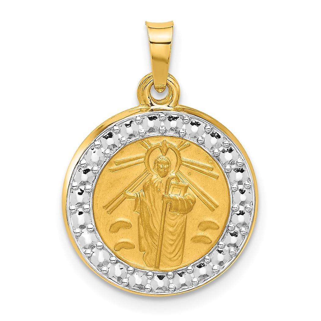 16.4mm 14k With White Rhodium Hollow St. Jude Thaddeus Medal Pendant Necklace-Pendant for Women