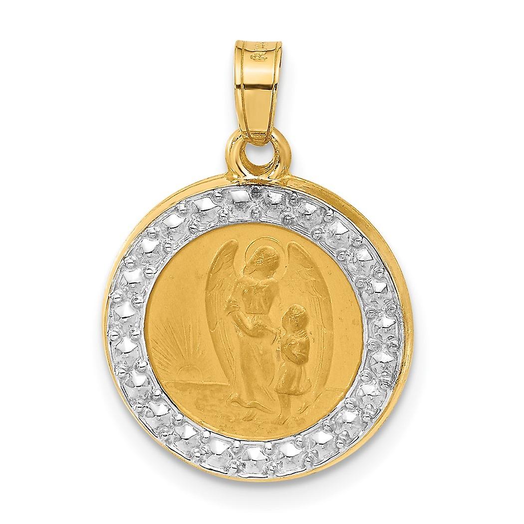 16.6mm 14k and White Rhodium Hollow Our Guardian Angel Medal Pendant Necklace-Pendant for Women