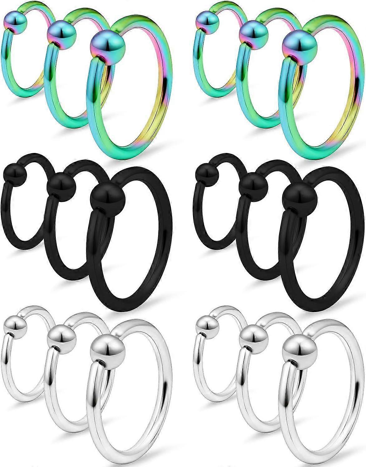 16G Captive Bead Piercing Ring Stainless Steel Nose Hoop Rings Eyebrow Lip Ear