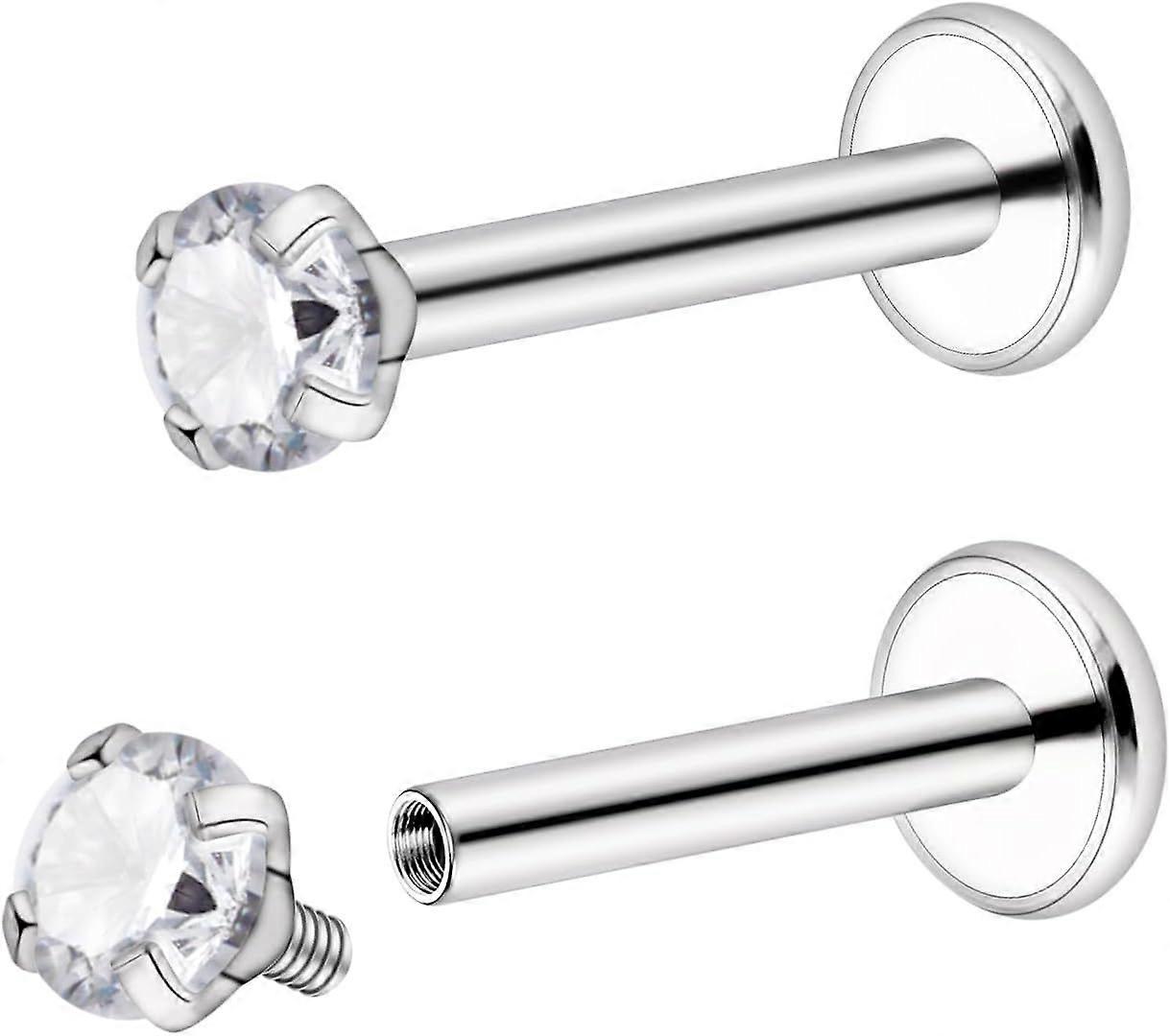 16g/18g/20g Titanium Internally Threaded Screw CZ Crystals Stud Piercing Jewelry