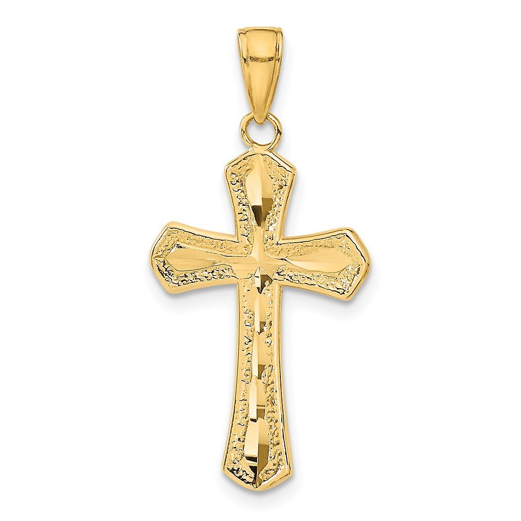 16mm 10k Sparkle-Cut Beveled Edges Cross Pendant - 1.3 Grams In 10k Yellow Gold - - Width of Item: 16 mm - Length of Item: 31 mm - Finish: Polished - Feature: Solid - - This Item Does Not Ship With a Chain