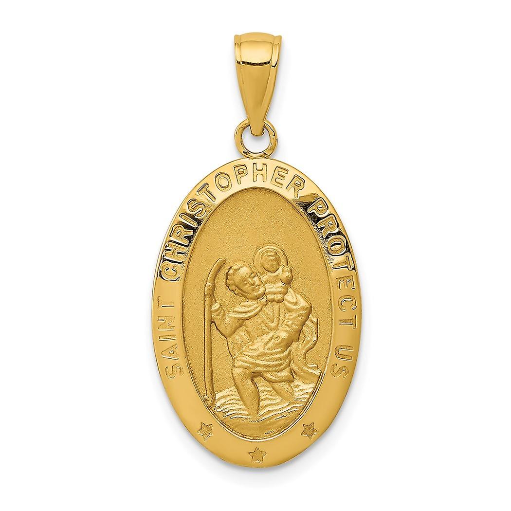 16mm 10k Solid Yellow Gold Saint Christopher Medal Pendant Necklace-Pendant for Women - 2.4 Grams