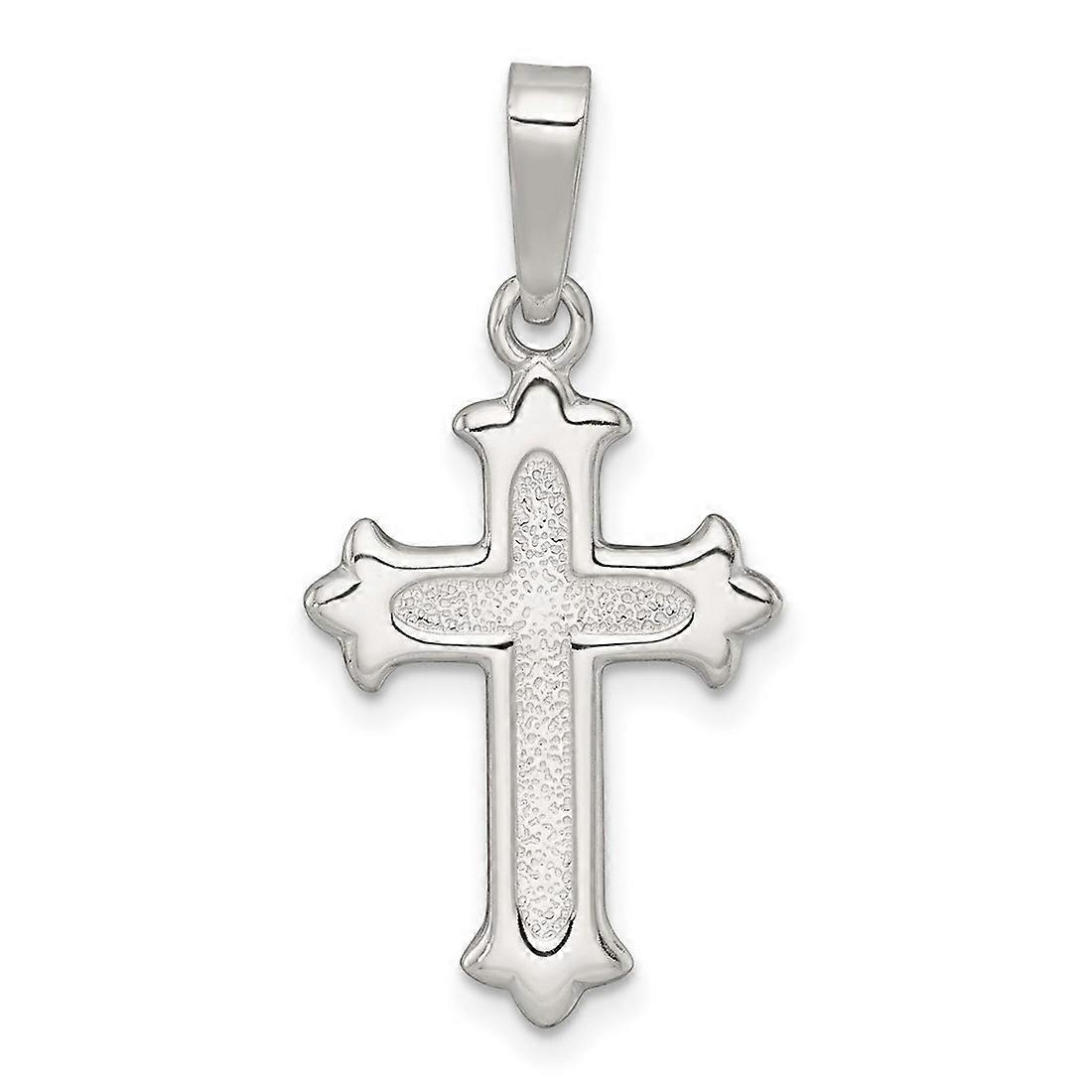16mm 925 Sterling Silver Polished and Textured Religious Faith Cross Pendant Necklace-Pendant for Women