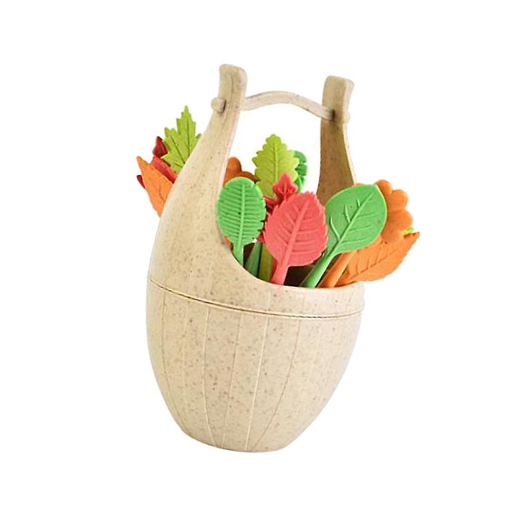 16pcs Green Biodegradable Wheat Straw Leaves Fruit Fork Set Party Beige