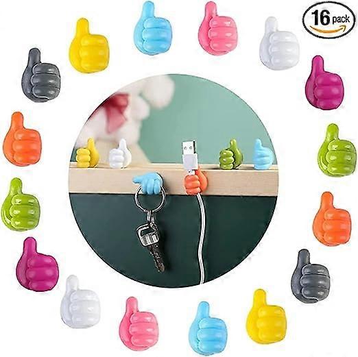 16PCS Silicone Thumb Wall Hooks Funny Cord Holders for Cables,Self-Adhesive Wall Decoration Hook Home/Office Data Cable Clip Wire Desk Organizer