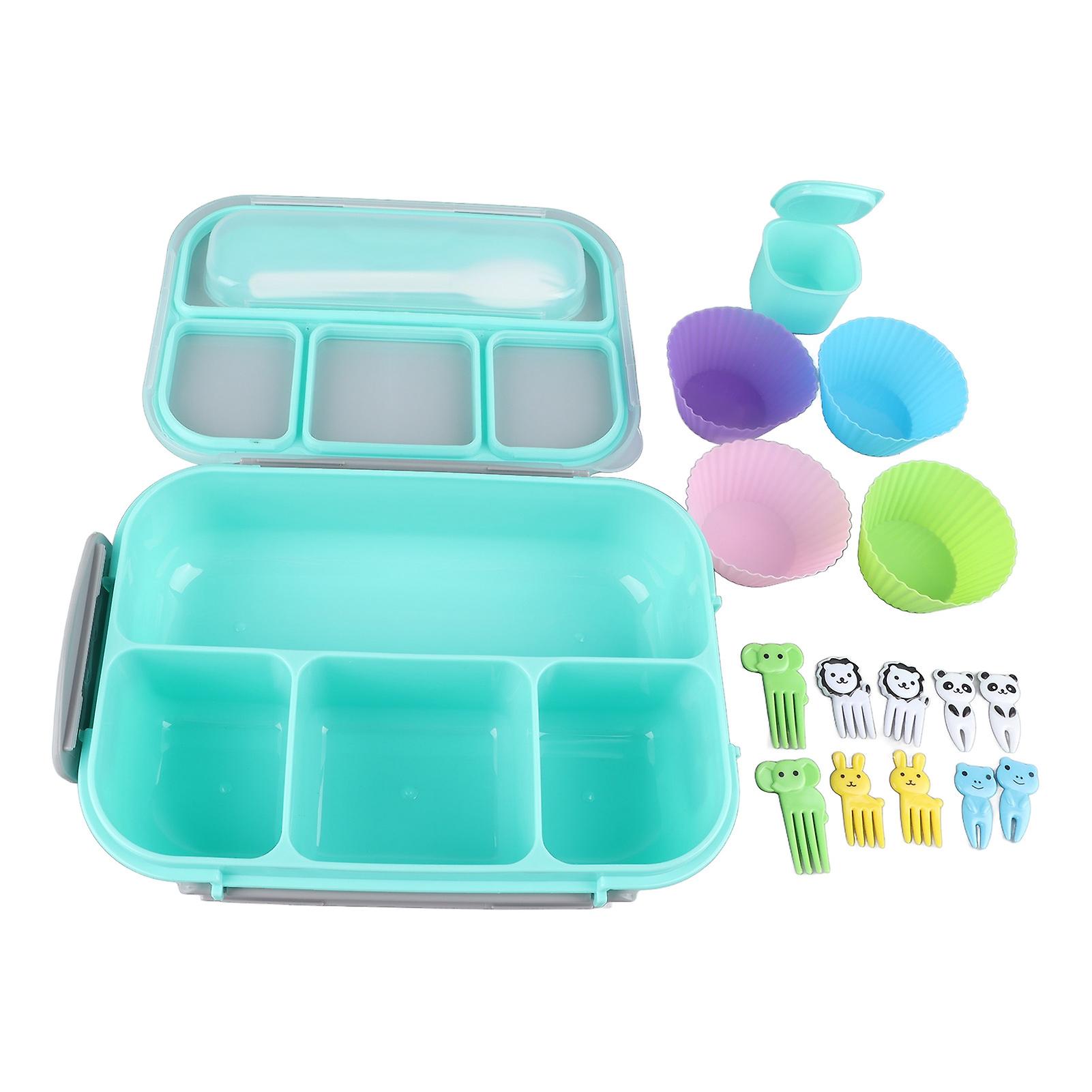 16PCS Set Bento Box Reusable 1300ml 4 Compartment Adult Lunch Box with Spoon for Fruit Lunch Green