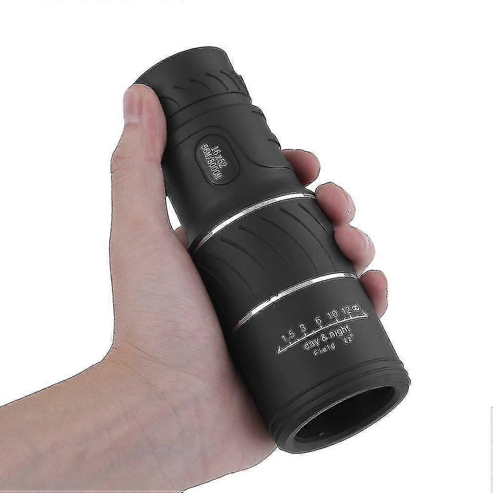 5MMField of view: 66m/8000mPrism system: Roof systemStandard magnification: 16 timesLens coating: FMC full-width multi-layer green filmProduct material: all metal (within), rubber (outside)Package Included: 1 x 16x52 Monocular Telescope1 x Rope1 x Storage Bag1 x ClothPlease Notes:1